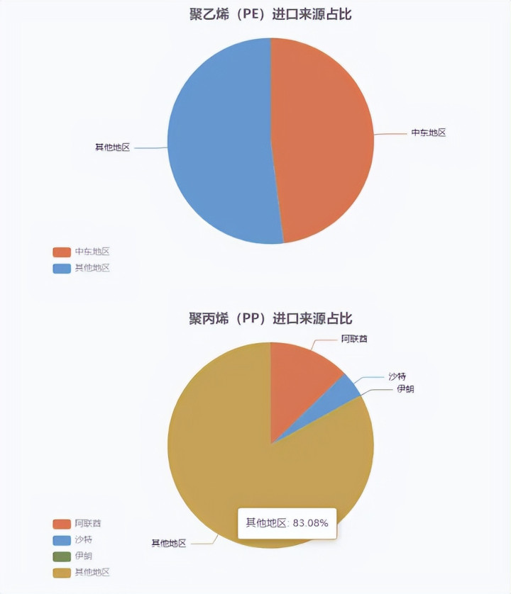 从进口结构看,PE对中东依赖度远高于PP: