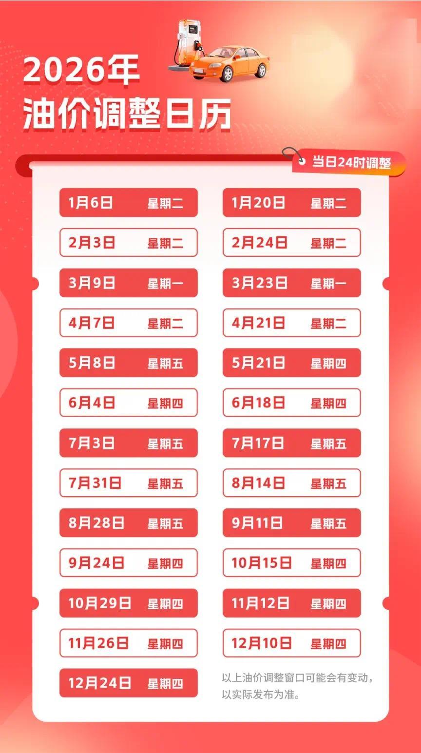 油价调整日历表所显示的时间节点均为某一日的24时,24时即次日的0时。