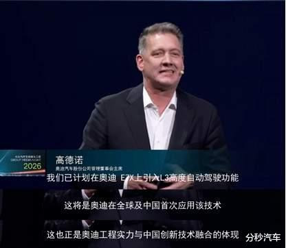 但在2026年的4月21日,当奥迪全球CEO高德诺(Gernot Döllner)站在大众集团之夜的聚光灯下,宣布将在AUDI E7X上全球首发L3自动驾驶时,我相信不少朋友应该会意识到: