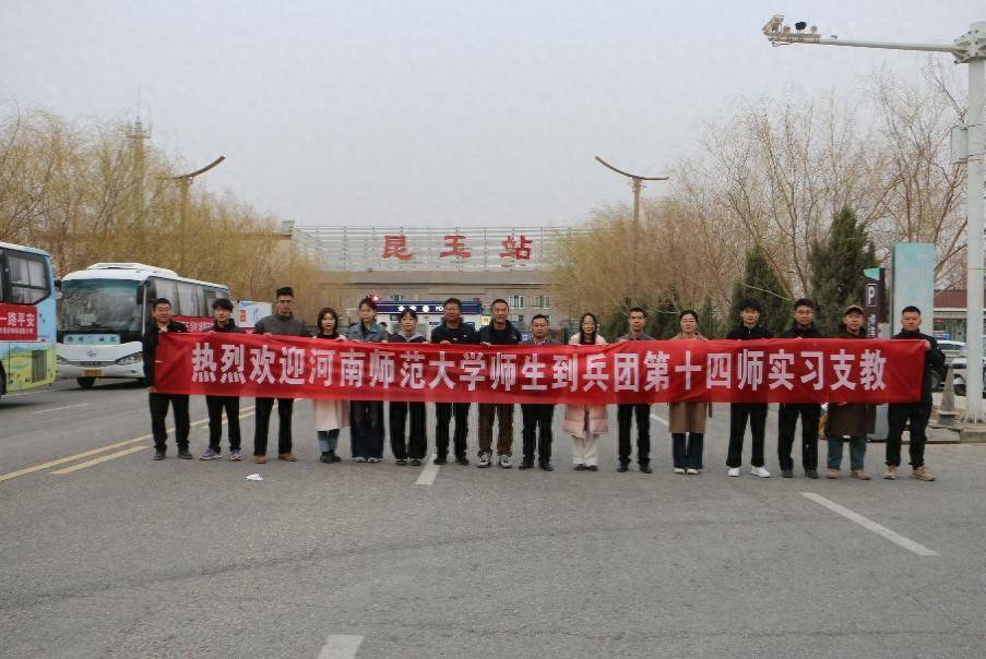 这是河南师范大学首批赴新疆生产建设兵团第十四师昆玉市二二四团第二中学支教的13名2023级优秀师范生。一场横跨千里的奔赴,就此拉开序幕。
